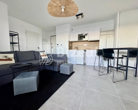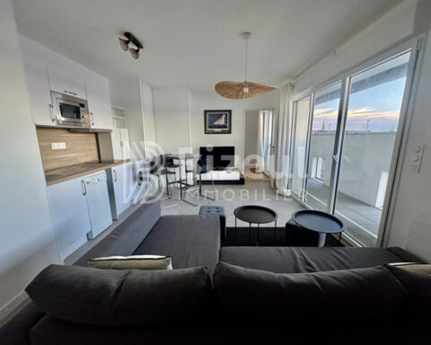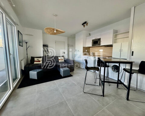 L'appartement se compose : d'un salon avec une cuisine ouverte aménagée et équipée et donnant sur une terrasse, une chambre, d'une salle d'eau.