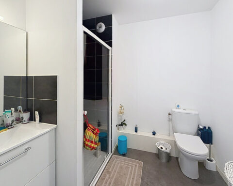 L'appartement est également aux normes PMR et possède un parking privatif sécurisé sous carport.