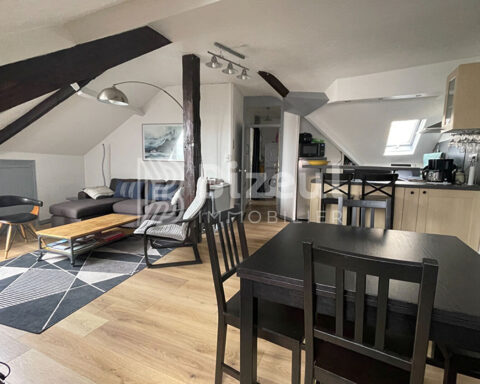 Bénéficiant d'un emplacement exceptionnel cet appartement sous rampant d'environ 90 m² au sol et plus de 60 m² en loi carrez est disposé de la façon suivante :