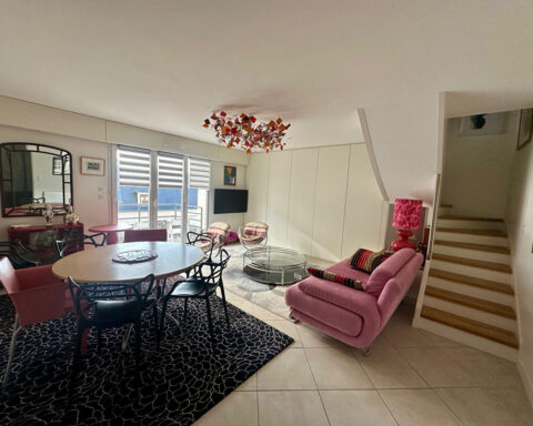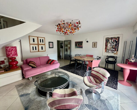 En duplex, un palier dessert deux belles chambres, un bureau, une salle d'eau, WC.