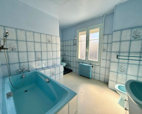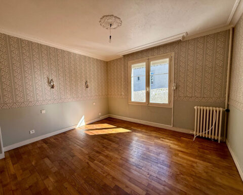 Le premier étage dessert trois chambres dont deux avec placards et une salle de bains avec wc.