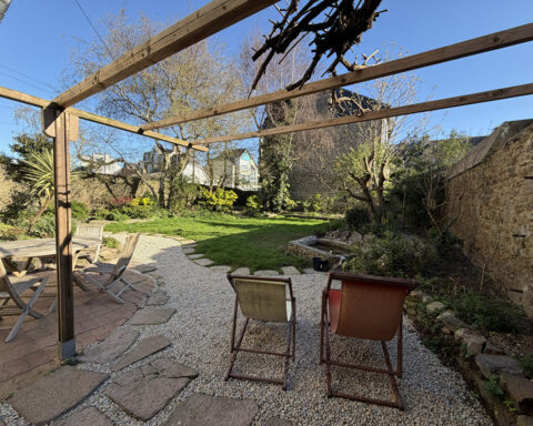 La maison est implantée sur une superbe parcelle plein sud de 525 m² clos de murs, particulièrement rare dans ce quartier. Ce terrain spacieux et préservé offre un environnement calme et verdoyant tout en présentant un éventuel potentiel de construction en fond de parcelle pour y implanter un garage indépendant.
