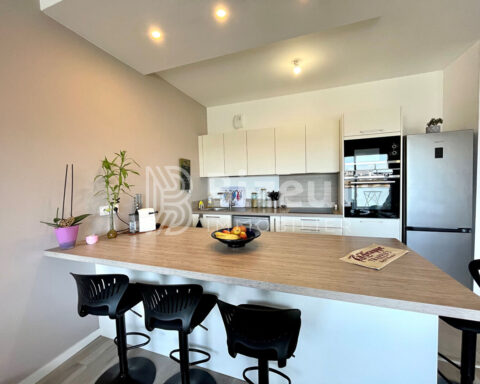 L'appartement dispose d'une entrée avec placard, un wc avec lave mains, une buanderie, une pièce de vie avec accès un balcon, une cuisine ouverte aménagée et équipée (meubles hauts et bas, plaque de cuisson, micro-ondes, hotte et four), trois chambres dont une avec balcon, une salle d'eau avec WC.