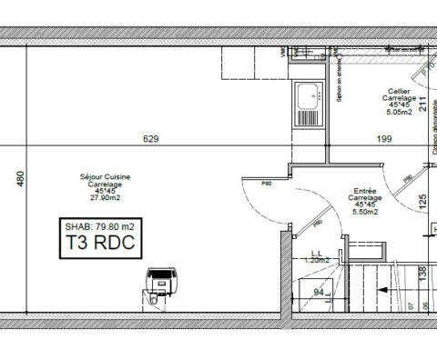 Au rez-de-chaussée, elle se compose d'une entrée, d'une pièce de vie équipée d'un poêle et ouverte sur un jardin privatif d'environ 35 m², d'une cuisine aménagée et équipée (plaque de cuisson, hotte, four), d'un cellier et d'un WC indépendant.